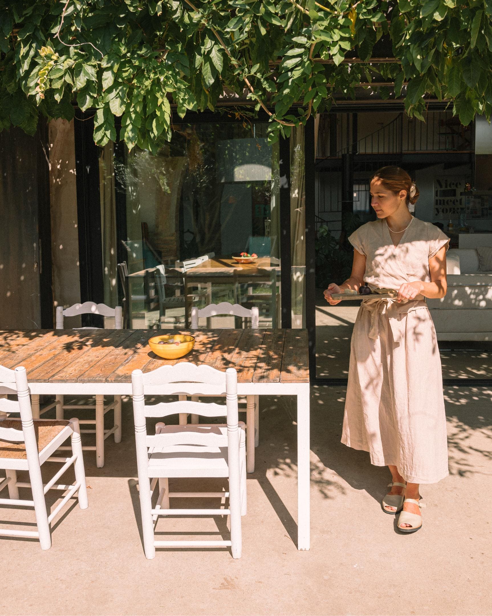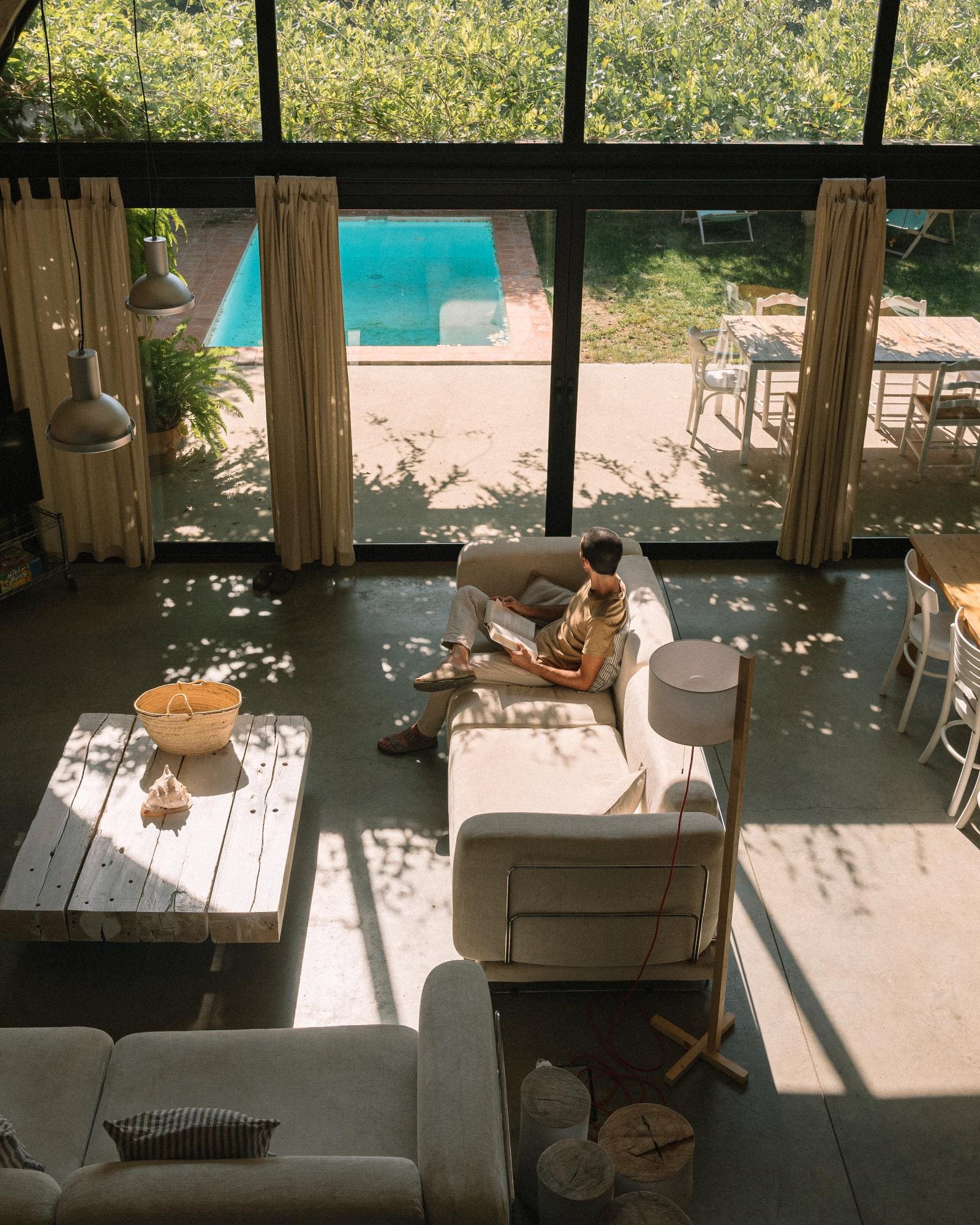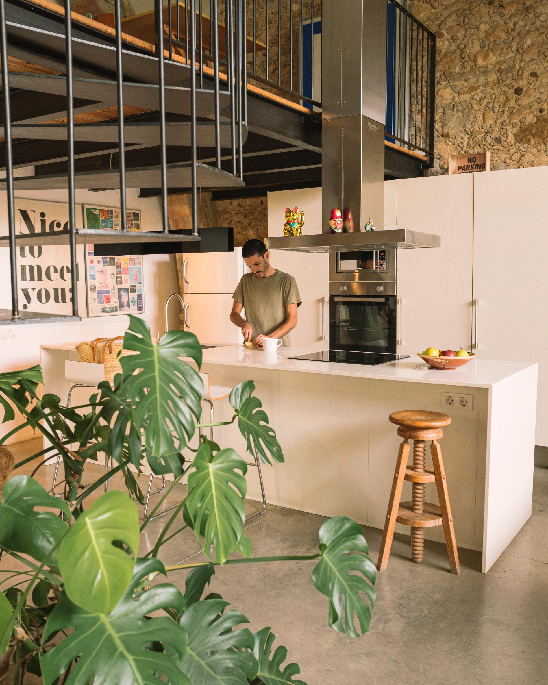 This rustic-style house exudes natural charm and comfort. Upon entering, you are welcomed by a large open space with high ceilings that preserve the original structure of the barn. There is a spacious, fully equipped open kitchen that is highly functional and invites you to cook at any time. In the same open-plan space, you’ll find the dining area and living room with sofas, TV, and a wood-burning fireplace. A large glass wall floods the entire space with natural light and leads directly to the garden.