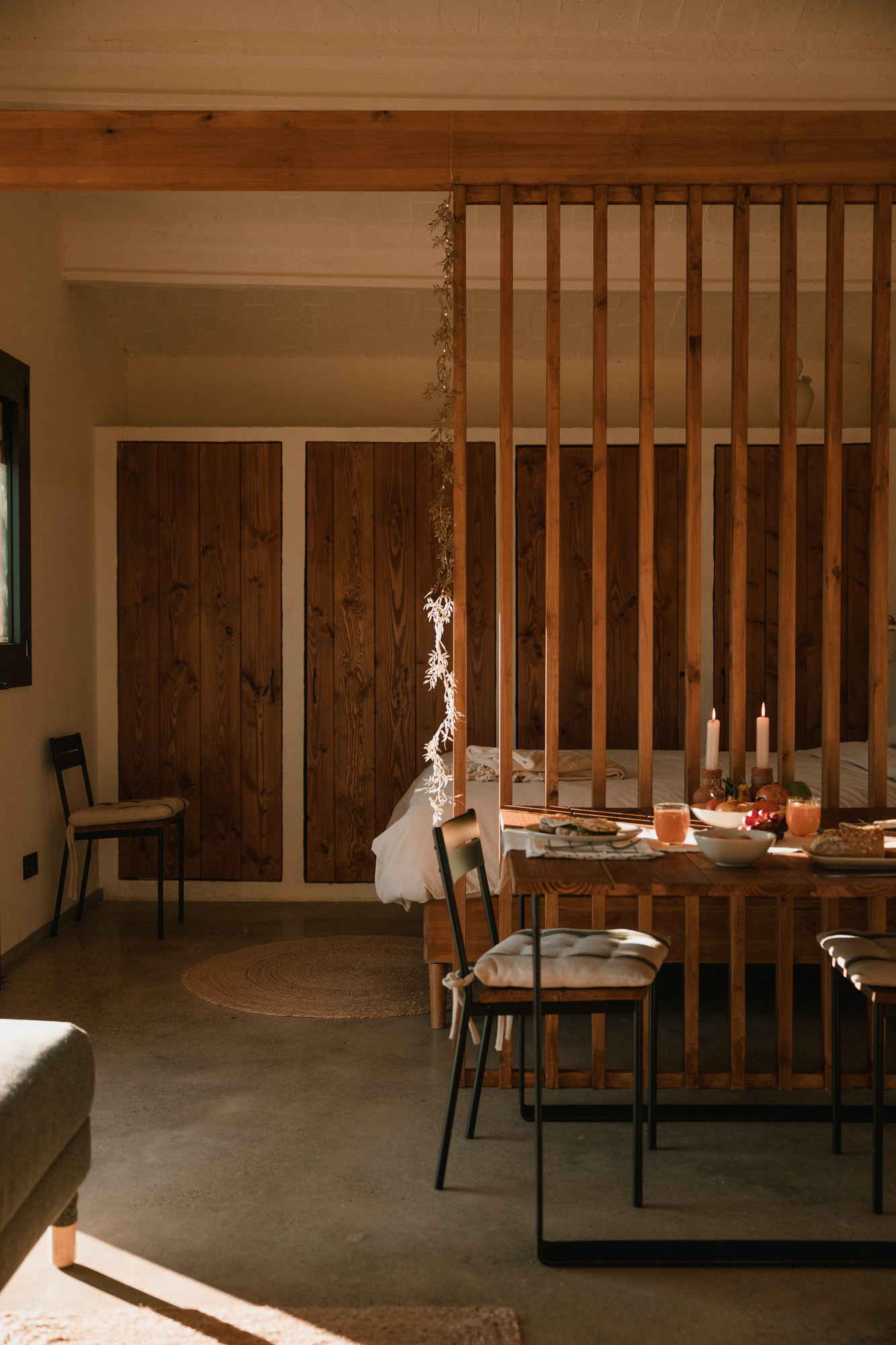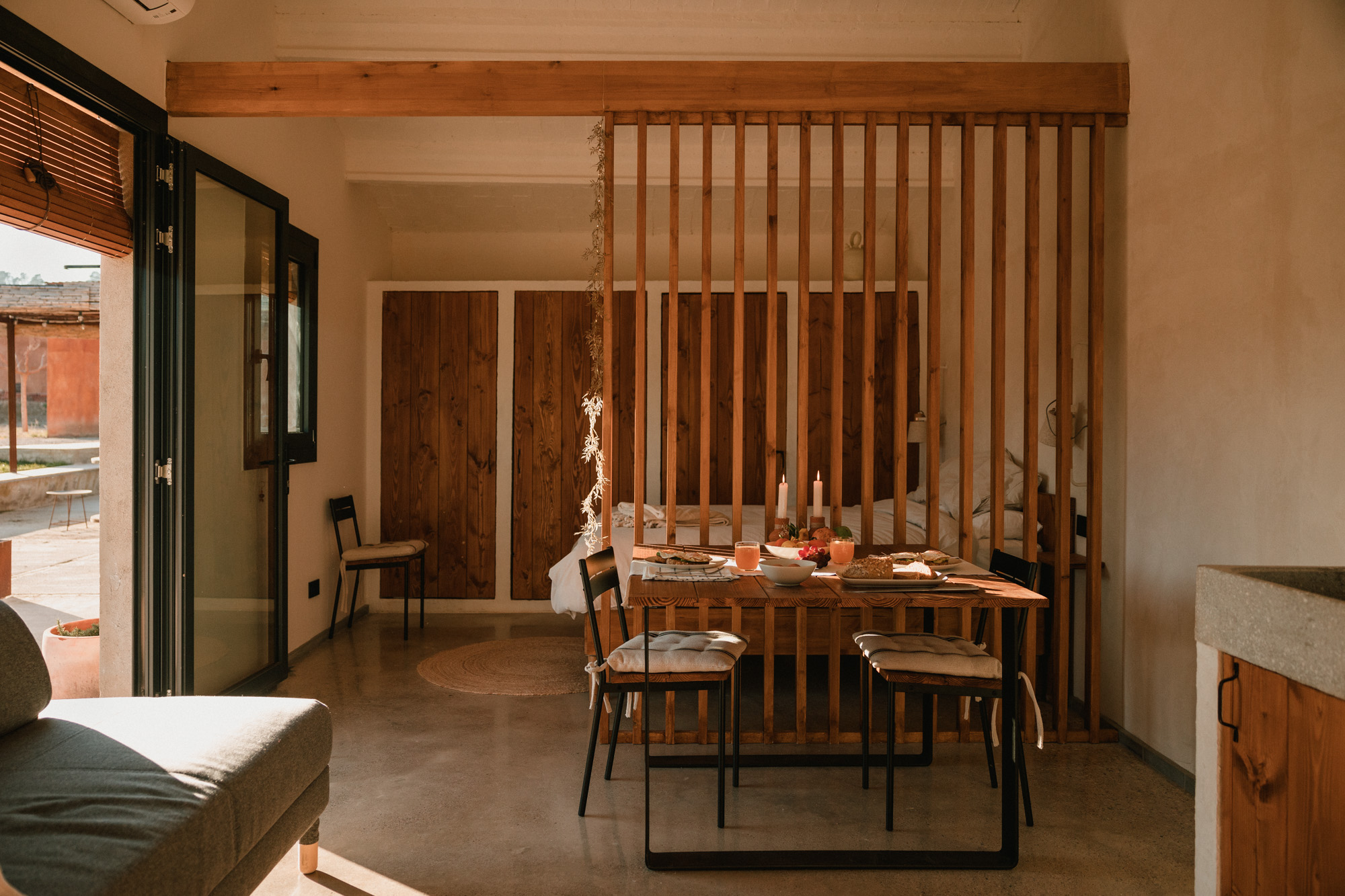 Kitchen – wood-burning fireplace – hot & cold air conditioning – 1 bathroom – 1 sofa bed – 1 bedroom – free WiFi – TV – private garden with porch, table, chairs and outdoor shower. Views over the Empordà countryside and the Montgrí. Fully private area with no immediate neighbours.