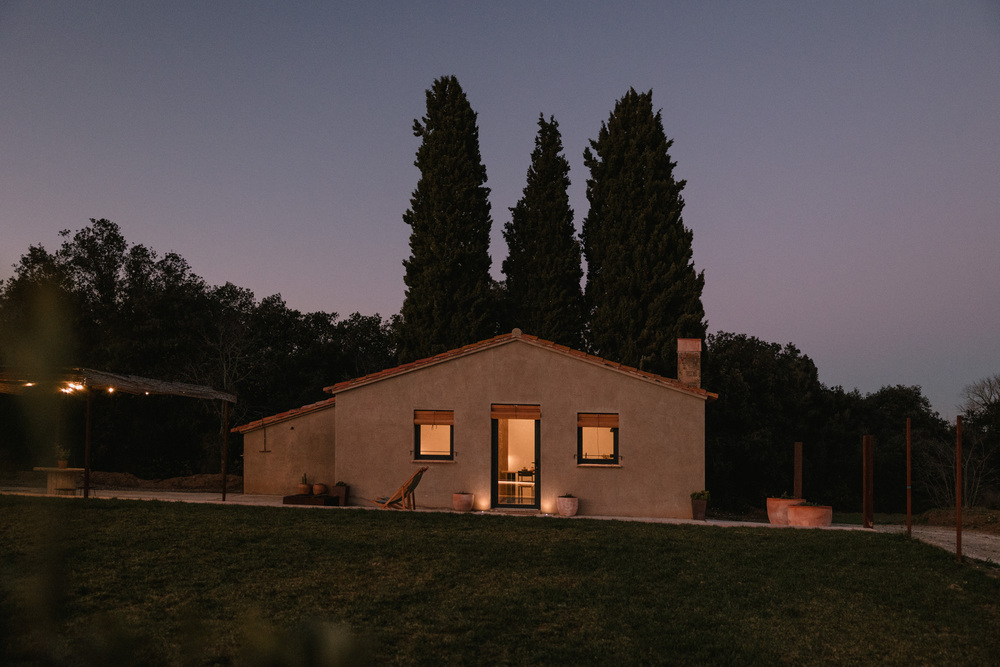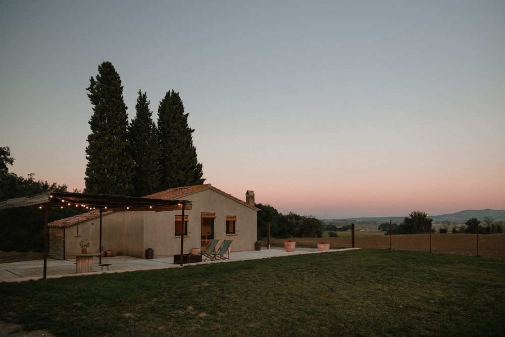 Cocina – chimenea de leña – aire caliente y frio – 1 baño – 1 sofá cama – 1 dormitorio – wiffi gratuito – TV – Jardín privado con porche, mesa, sillas y ducha exterior. Vistas a los campos del Empordà y al Montgrí – Zona con privacidad total sin vecinos.